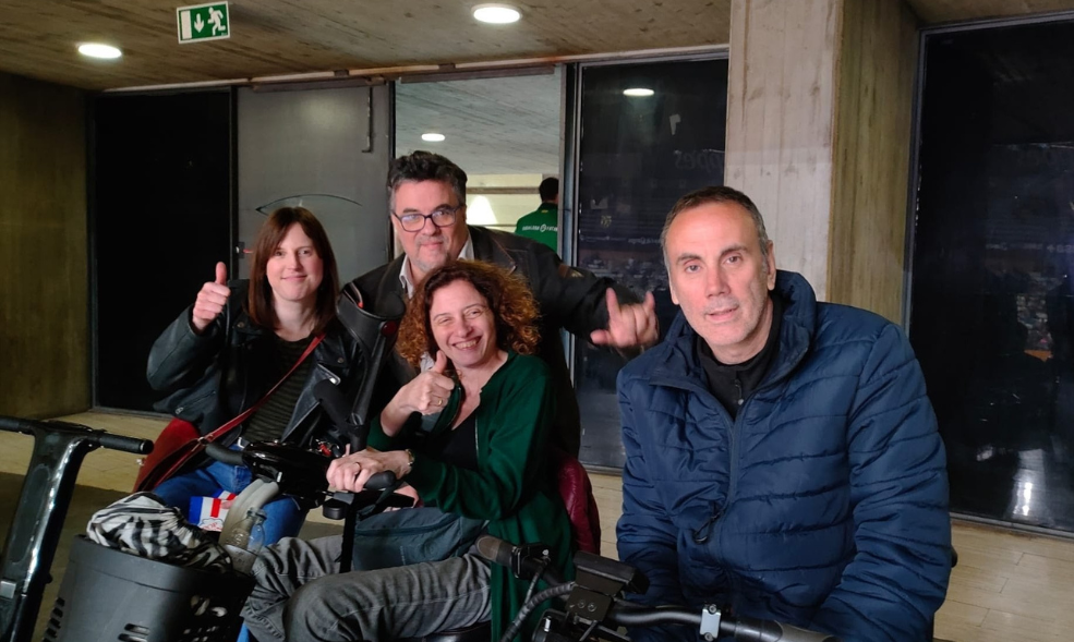 L’arribada al recinte ja ens feia preveure que seria una jornada emocionant. Ens vam situar en un espai adaptat per a scooters i cadires de rodes, amb els nostres acompanyants ocupant els seients just al davant, cosa que ens va permetre seguir el partit amb comoditat i visibilitat. Aquest tipus de distribució, aparentment senzilla, marca una gran diferència per a les persones amb mobilitat reduïda, ja que facilita la integració dins l’ambient general i evita la sensació d’aïllament que massa sovint es viu en altres espais.
